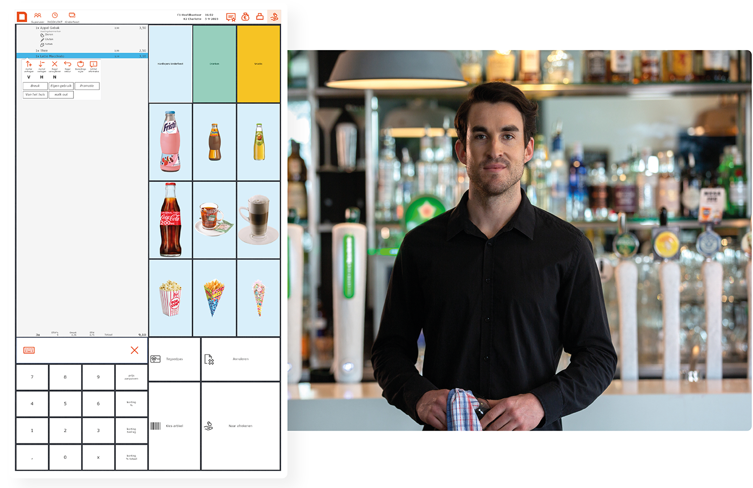 Met MplusKASSA is elk evenement geslaagd! Zet de kassa efficiënt in en maak op maat gemaakte activiteiten. Zo is er voor ieder evenement een eigen schermindeling met alleen de artikelen die benodigd zijn. Dat is hoe je meer overzicht creëert tijdens het evenement, maar ook meer inzicht krijgt bij het analyseren daarna.